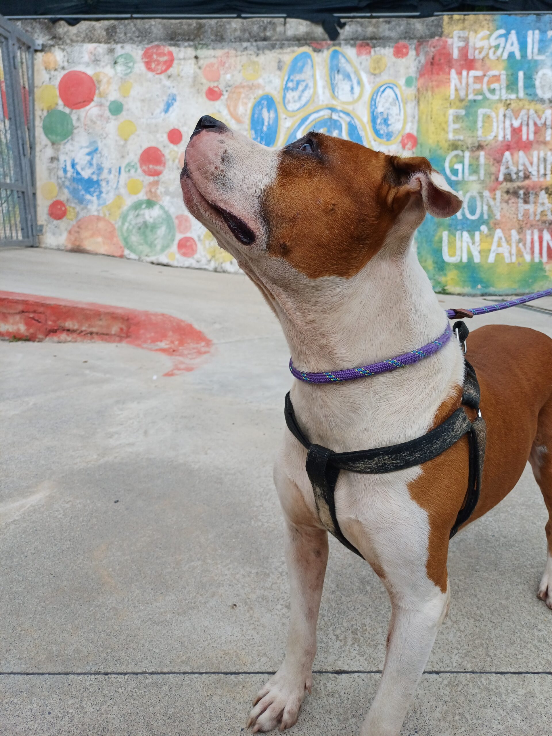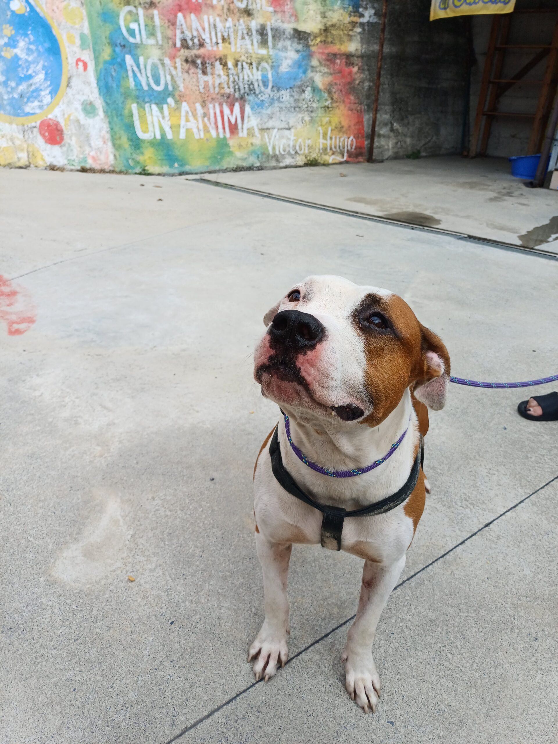 E’ una delle tante rinunce di proprietà. Entrato in canile a Settembre 2025, patisce molto la gabbia. Anche lui ha bisogno di una figura di riferimento che possa guidarlo e amarlo per sempre. Non mostra reattività particolari, sta già seguendo un percorso con il nostro educatore di fiducia. E’ pronto per un’adozione che, data la razza, deve essere responsabile.