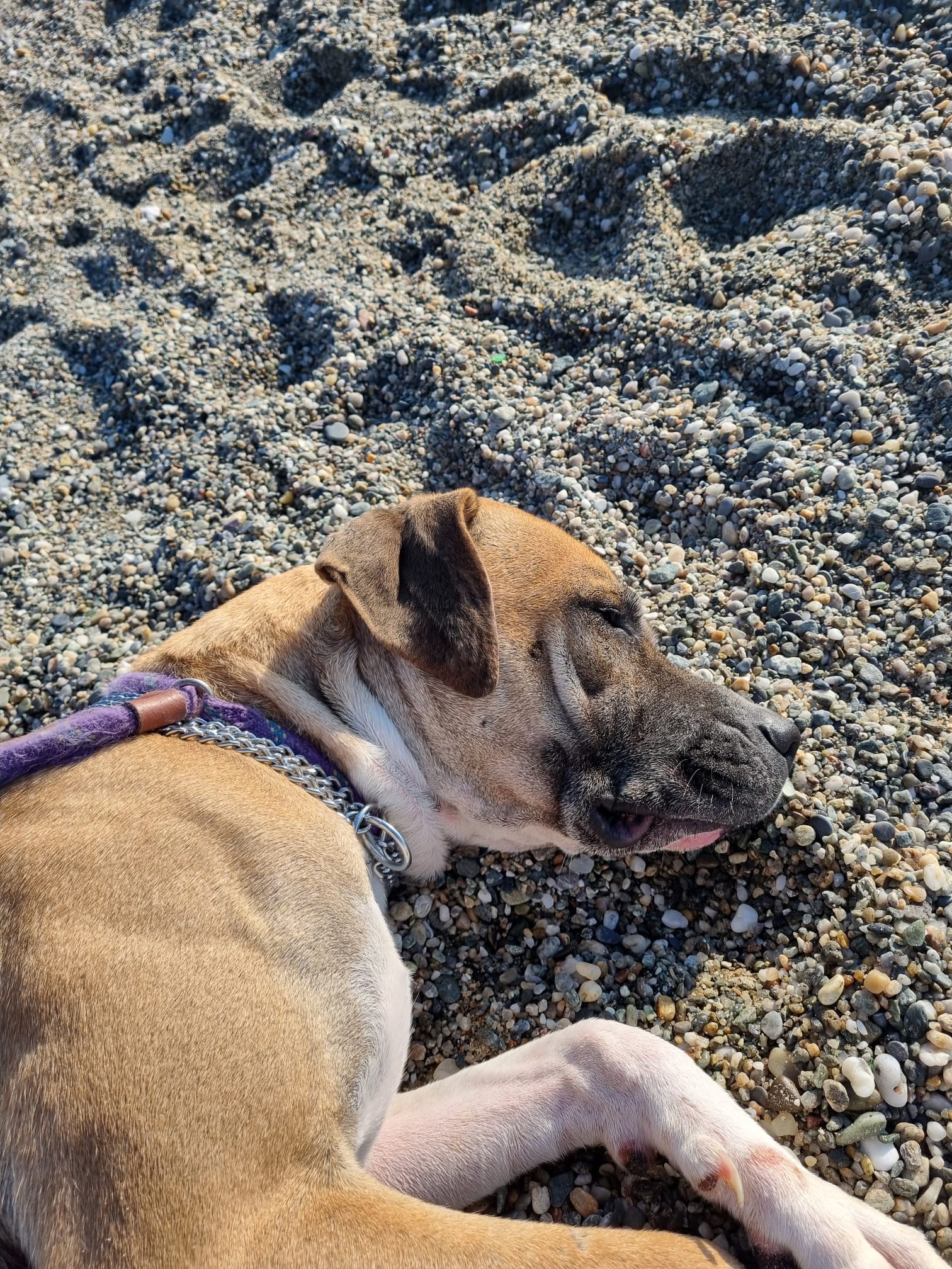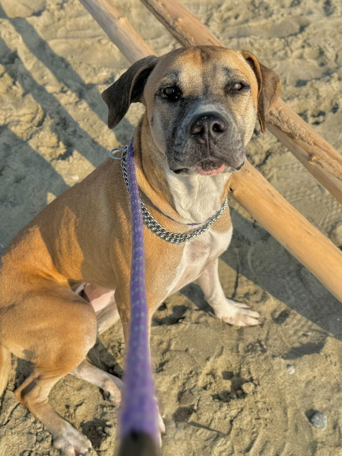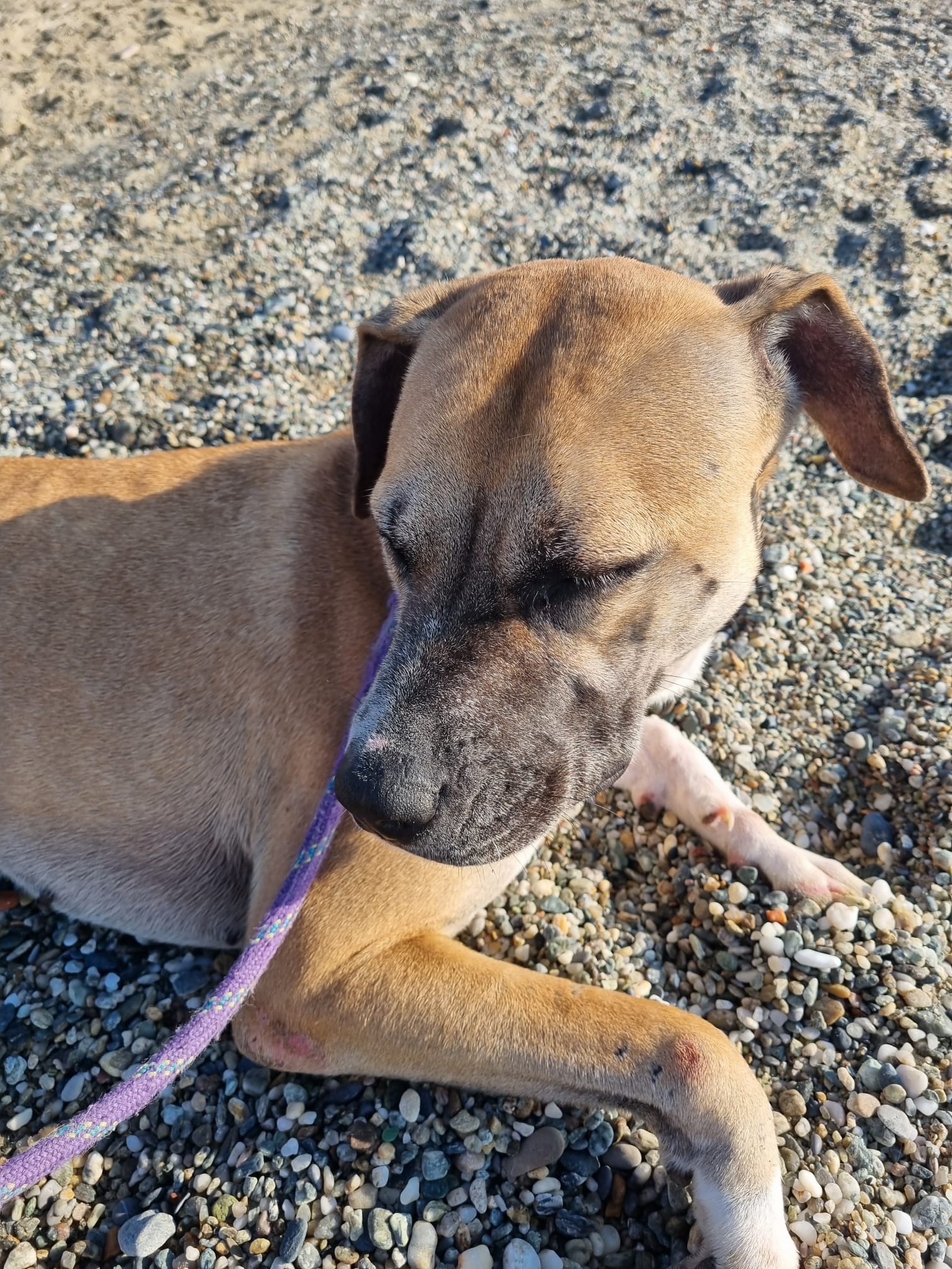 Rinuncia di proprietà, Cloe è una dolce meticcia nata nel 2020. Probabile incrocio Corso / cane da caccia, sterilizzata.