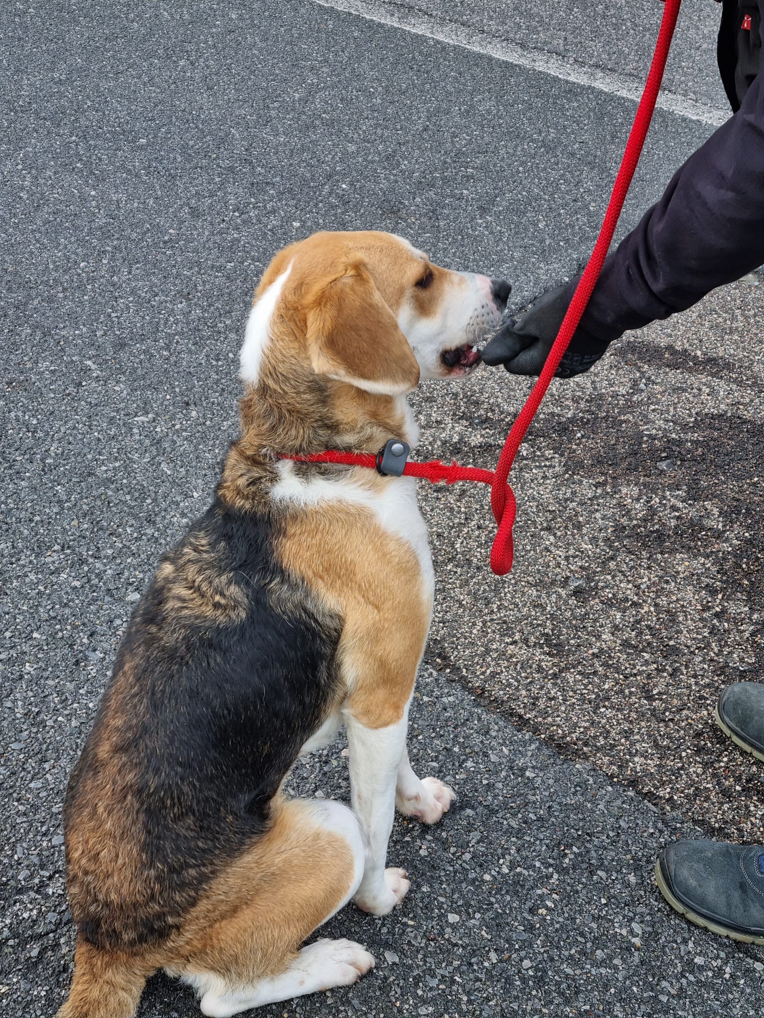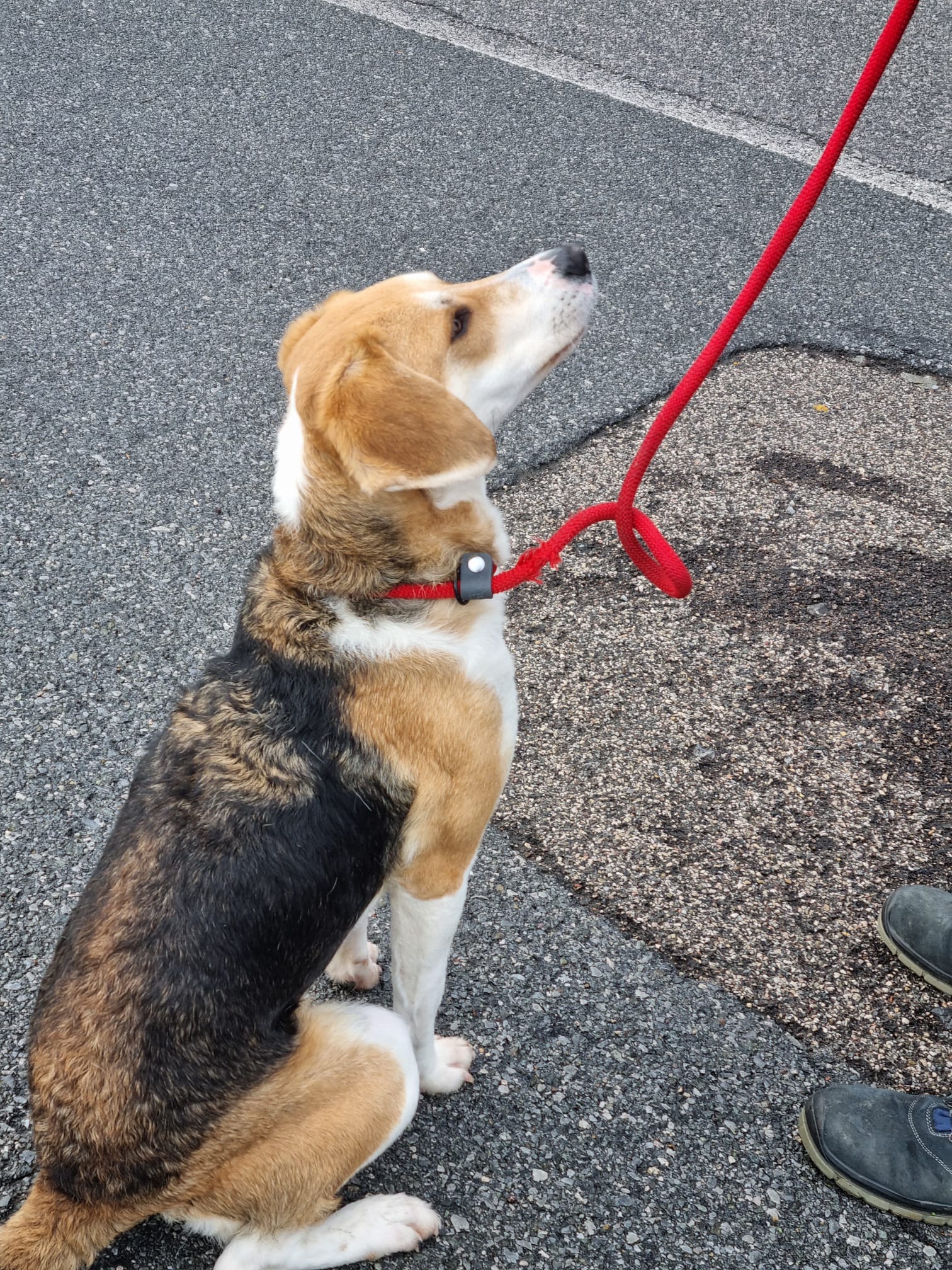 Simil Beagle, ama annusare e giocare con le palline. Ha bisogno di un po’ di pratica al guinzaglio perchè tende un pochino a tirare💙